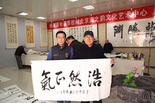 新春佳节既将到来之际,中国榜书艺术研究会十七位书法艺术家深入到北京海之韵文化艺术中心进行迎新春慰问活动。慰问活动由中国榜书艺术研究会副主席兼秘书长苑建国统筹组织并主持。